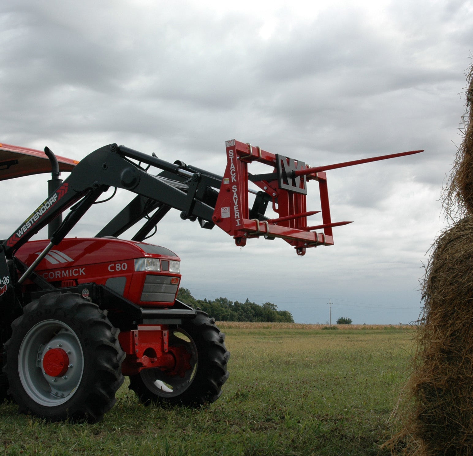 When it comes to handling hay bales the patented Stack Saver I is the perfect tool to get the job done fast and right. the Stack Saver I is a non-hydraulic bale lift with an automatic push-off for handling large round bales. No more fighting with bales that stick, which in turn saves you time, money, and hassle. No added valves or hydraulics required. The Automatic push-off is activated by your loader's bucket cylinders. The Stack Saver I is compatible with Westendorf quick attach couplers.