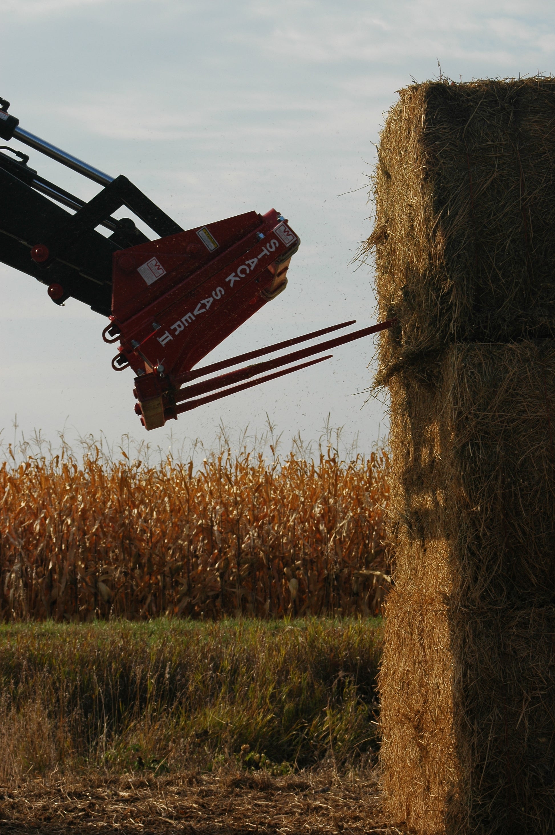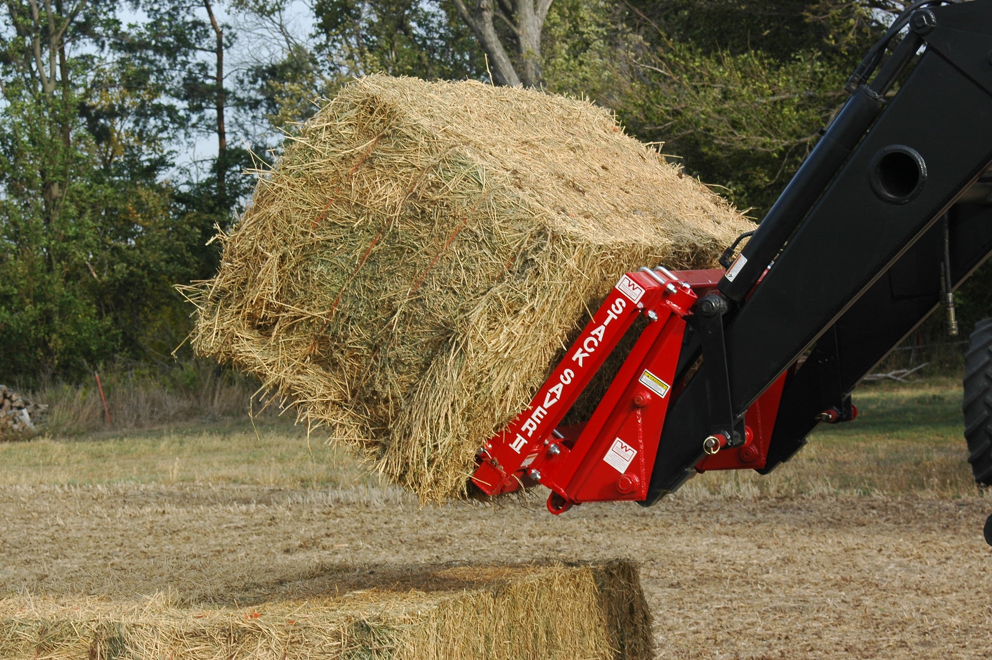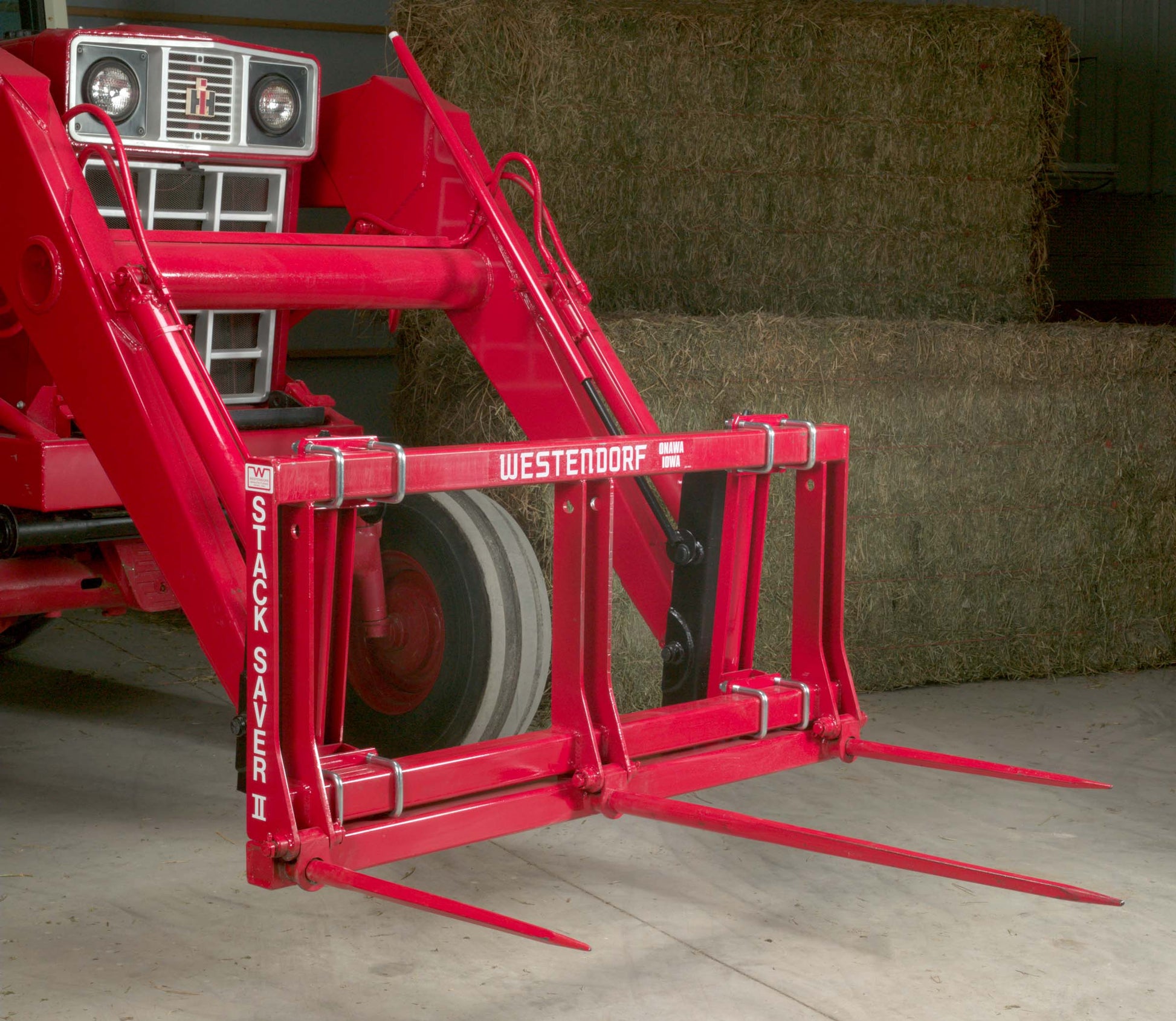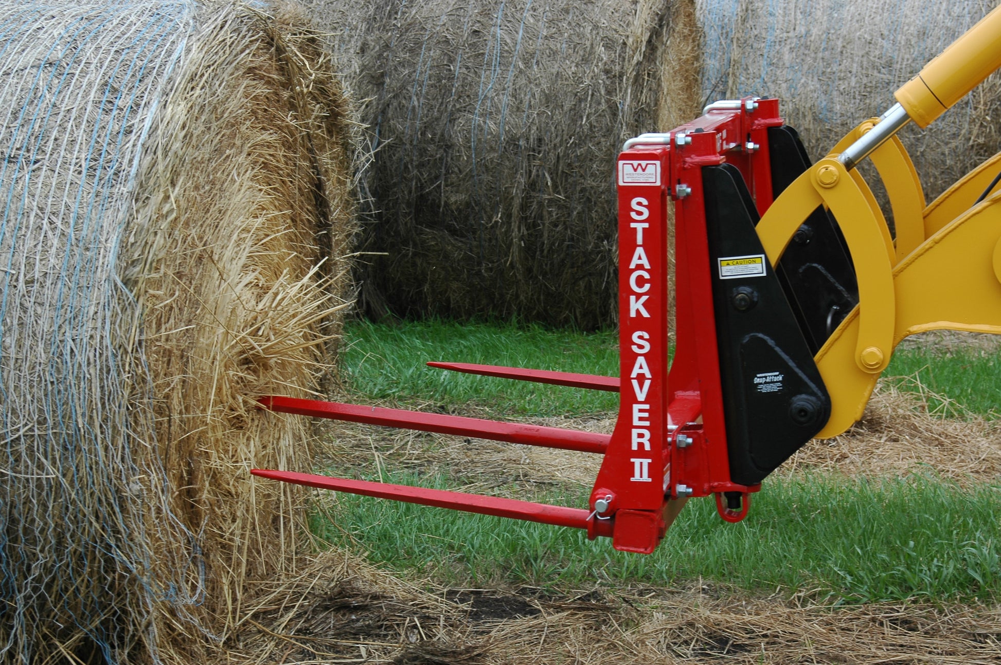 The SS-II line of Bale Spear attachments handles large round or square bales with ease, without requiring additional hydraulics, unlike other hay spear attachments. The patented automatic push-off feature eliminates the hassle of stuck bales, saving you time on every load. Built with heavy-duty forged spears and reinforced frame the Stack Saver II is tough enough for any hay handling job you have.